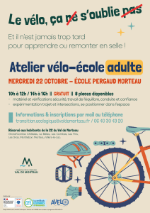 Vous manquez de confiance à vélo ? Alors les ateliers vélo-école adultes sont fait pour vous ! Le vélo, ça ne s’oublie peut-être pas totalement, mais revoir les bases, c’est essentiel pour se sentir à l’aise et remonter en selle. Inscrivez-vous gratuitement dès maintenant à l’atelier du mercredi 22 octobre (de 10h à 12h, puis […]